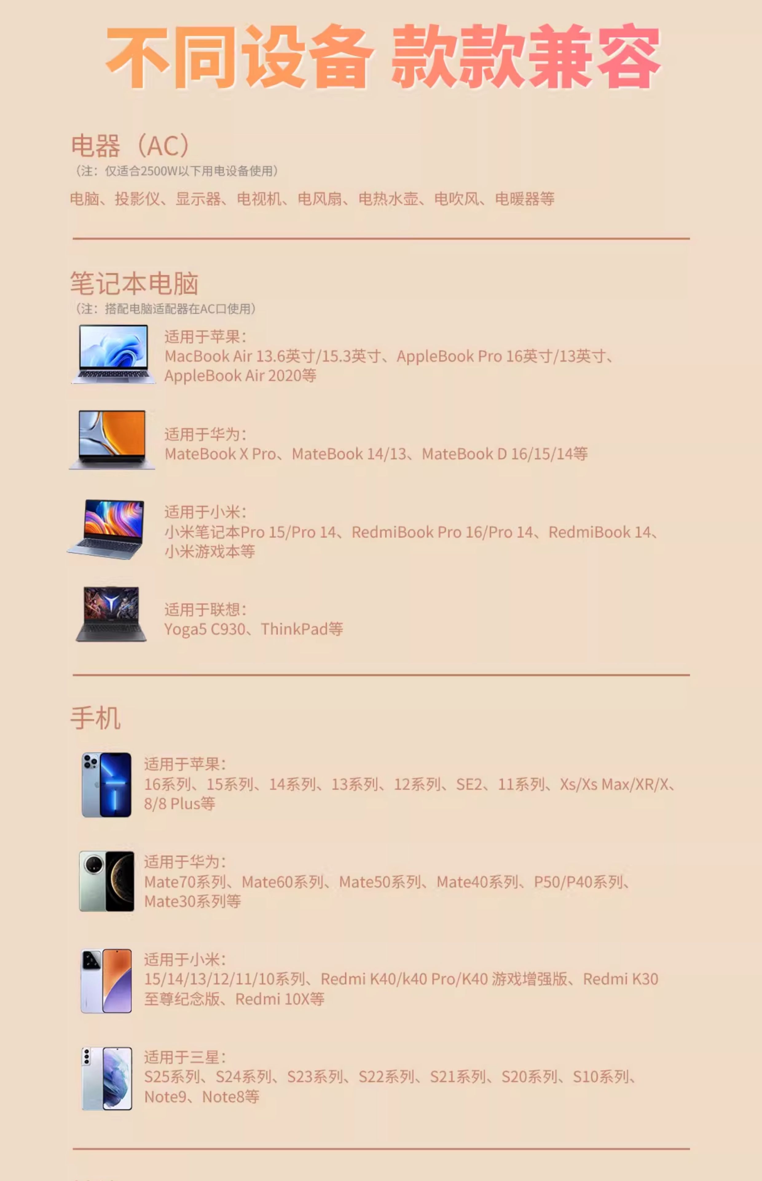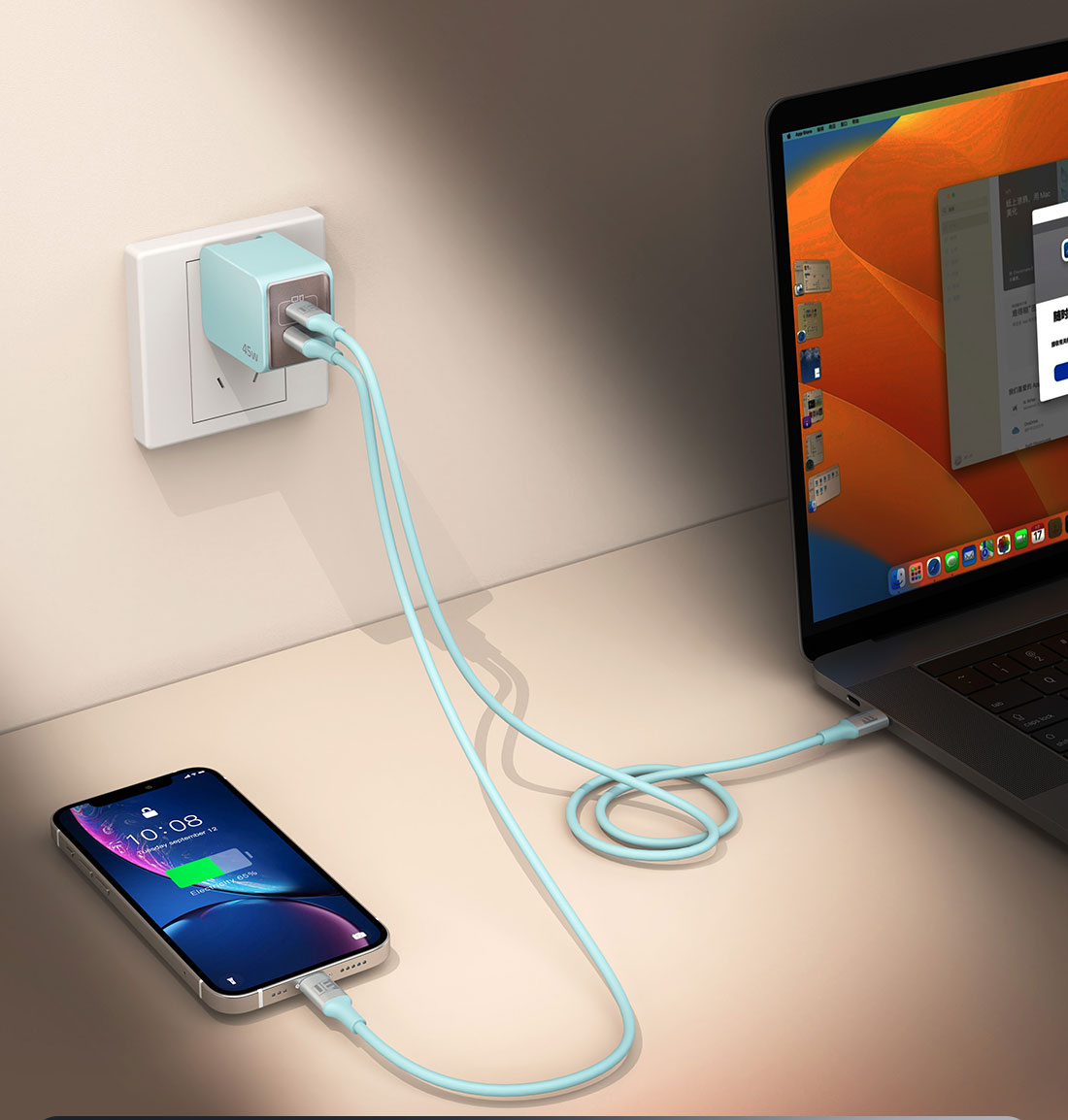 乐迪智美氮化镓充电器快充充电头适用华为小米vivo一加oppo三星iqoo荣耀苹果Type-c自带拉伸缩线PD笔记本电脑