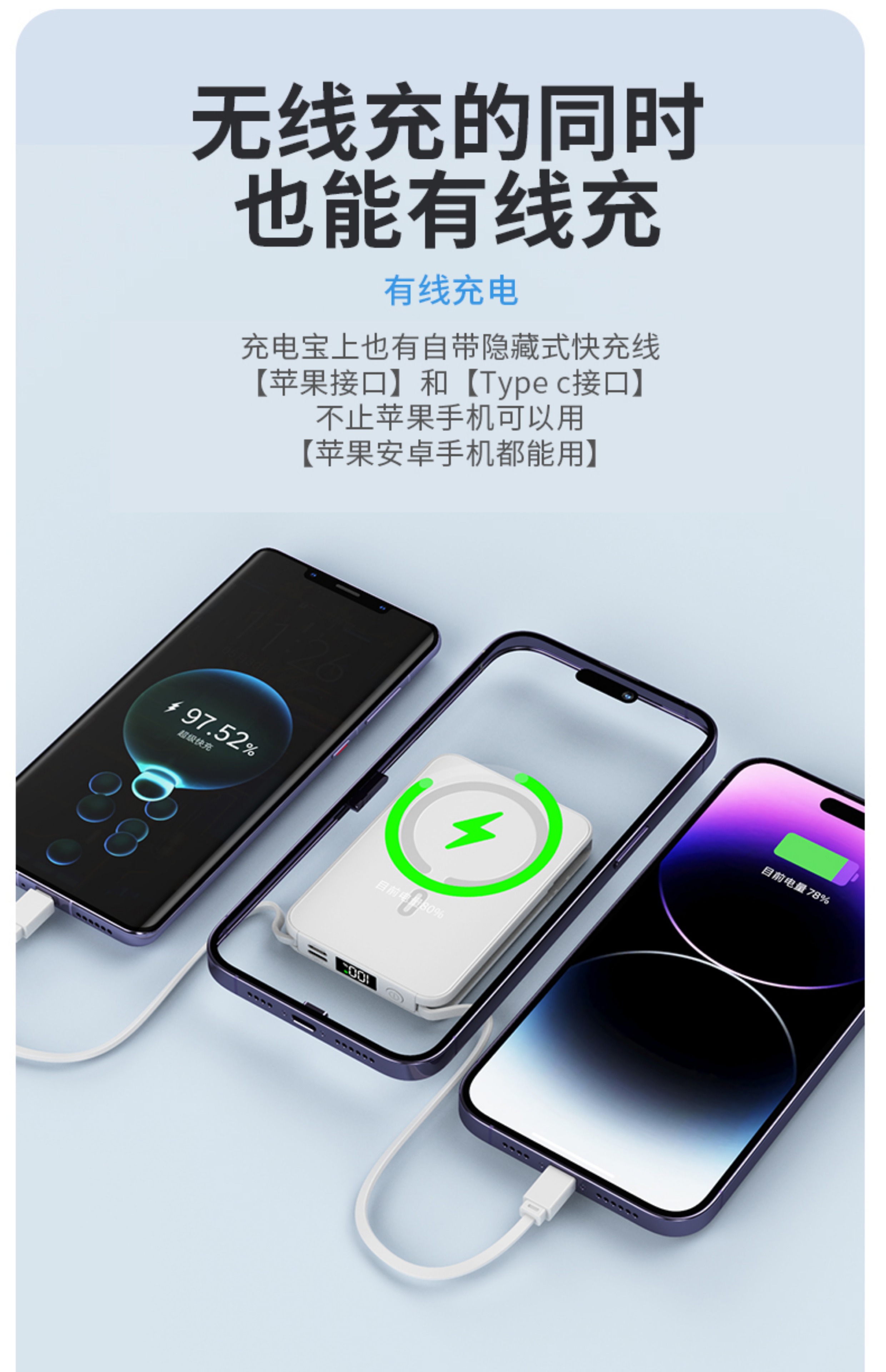 【30000M|0.65cm全网最薄】彩能正品快充magsaf磁吸无线充电宝超薄轻薄小巧便携移动电源适用于苹果
