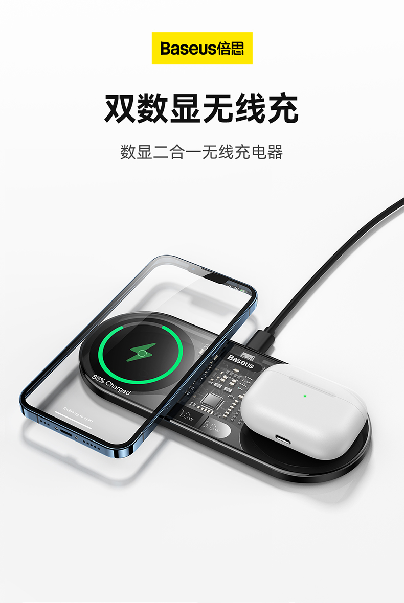 倍思无线充电器二合一适用苹果16Promax专用iphone15无限20W快充板14手机感应底座万能桌面华为三星车载通用