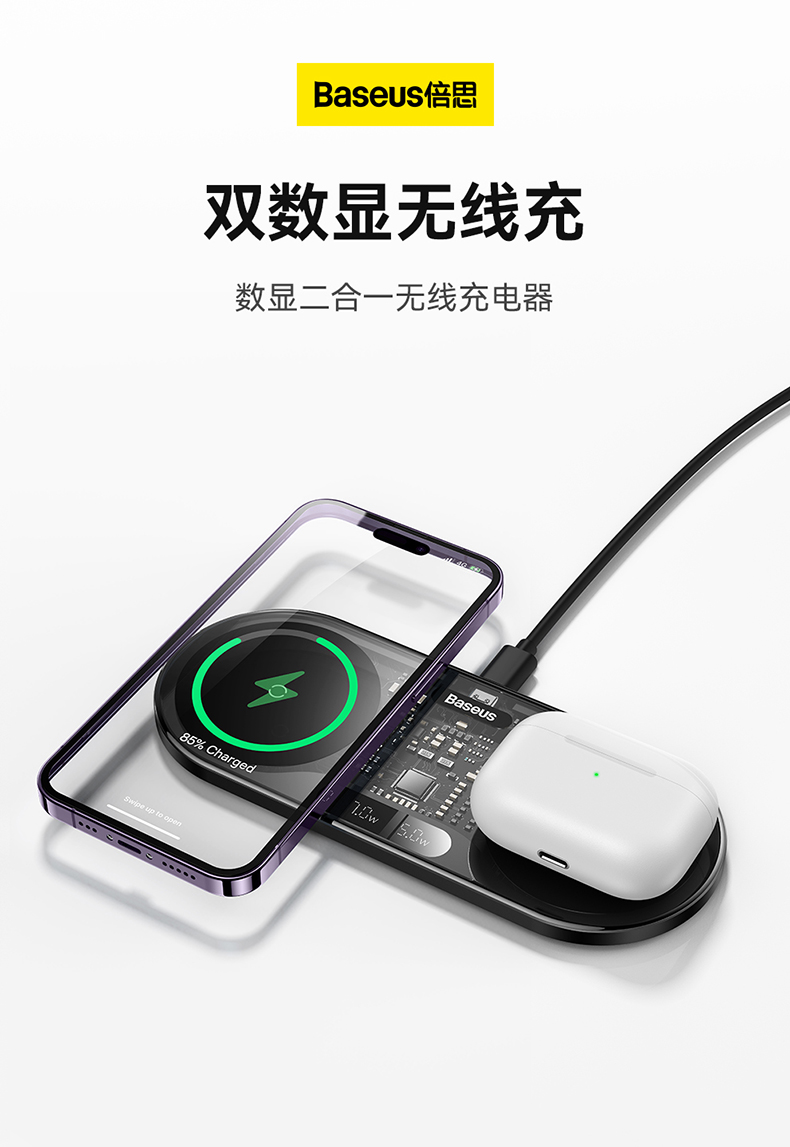 倍思二合一无线充电器适用苹果14手机快充专用iphone15Promax桌面充电底座车载20w华为三星小米安卓万能x通用