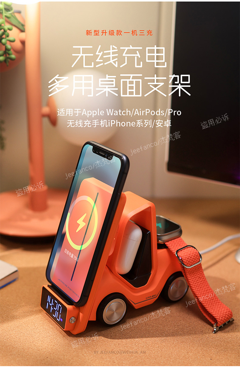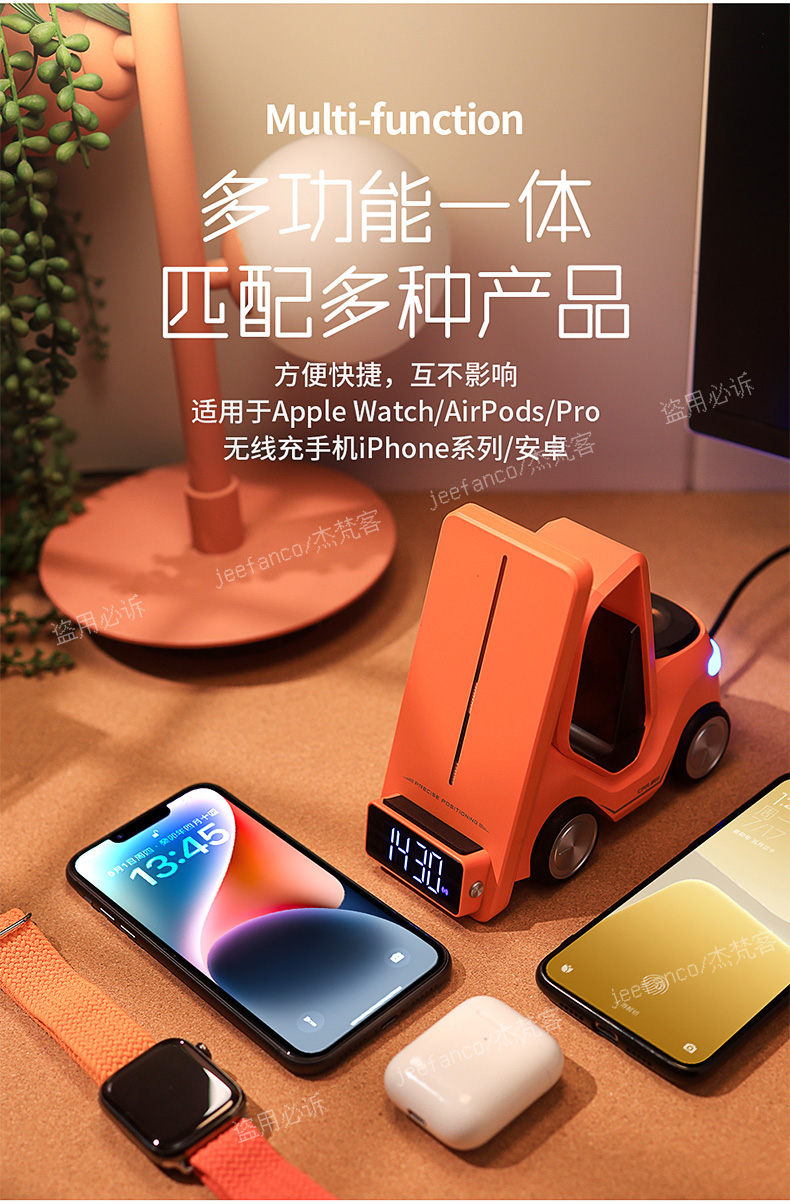 叉车【三合一无线充+自动对位】 赠QC3.0充电头(颜色随机发货)