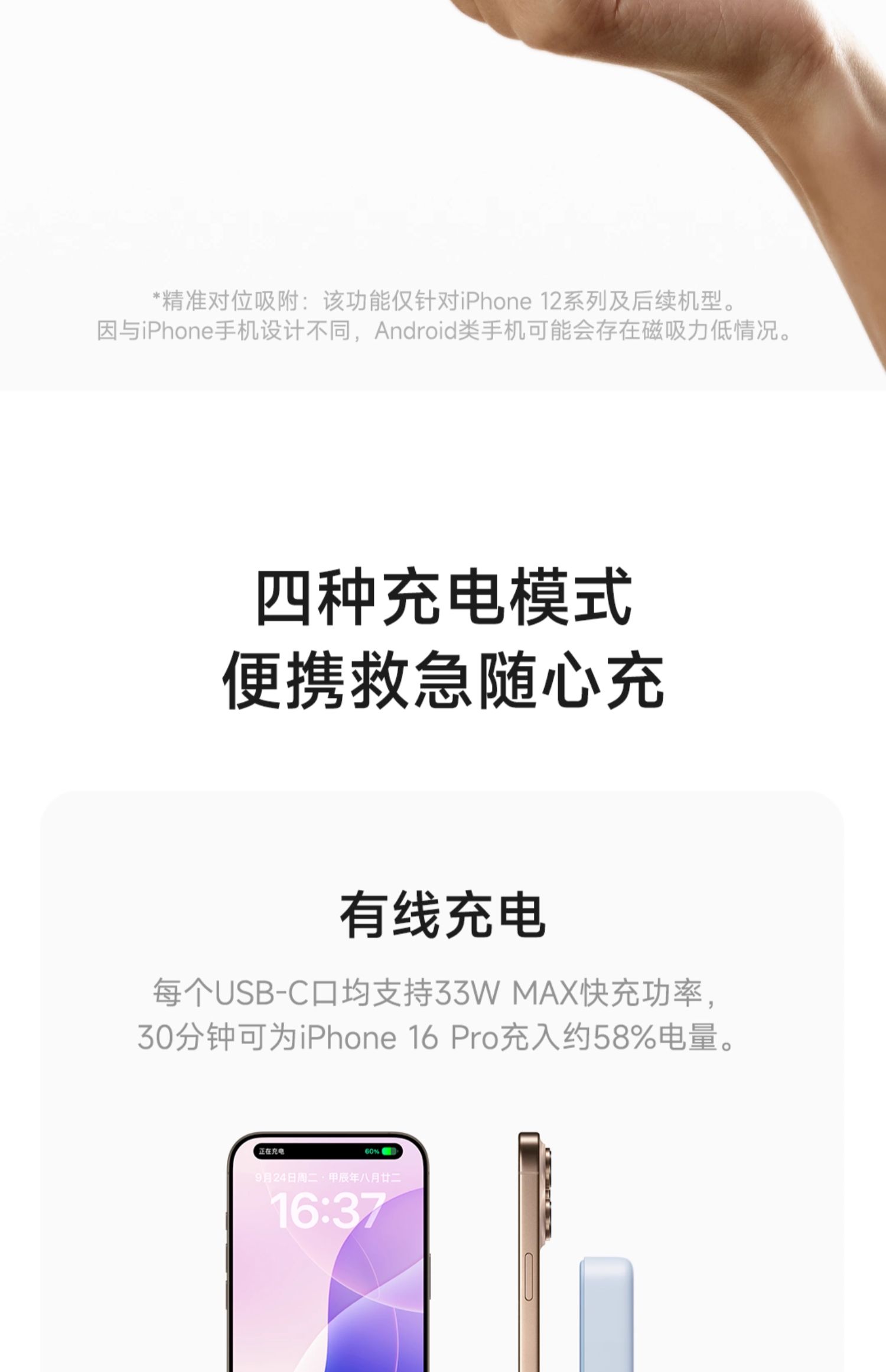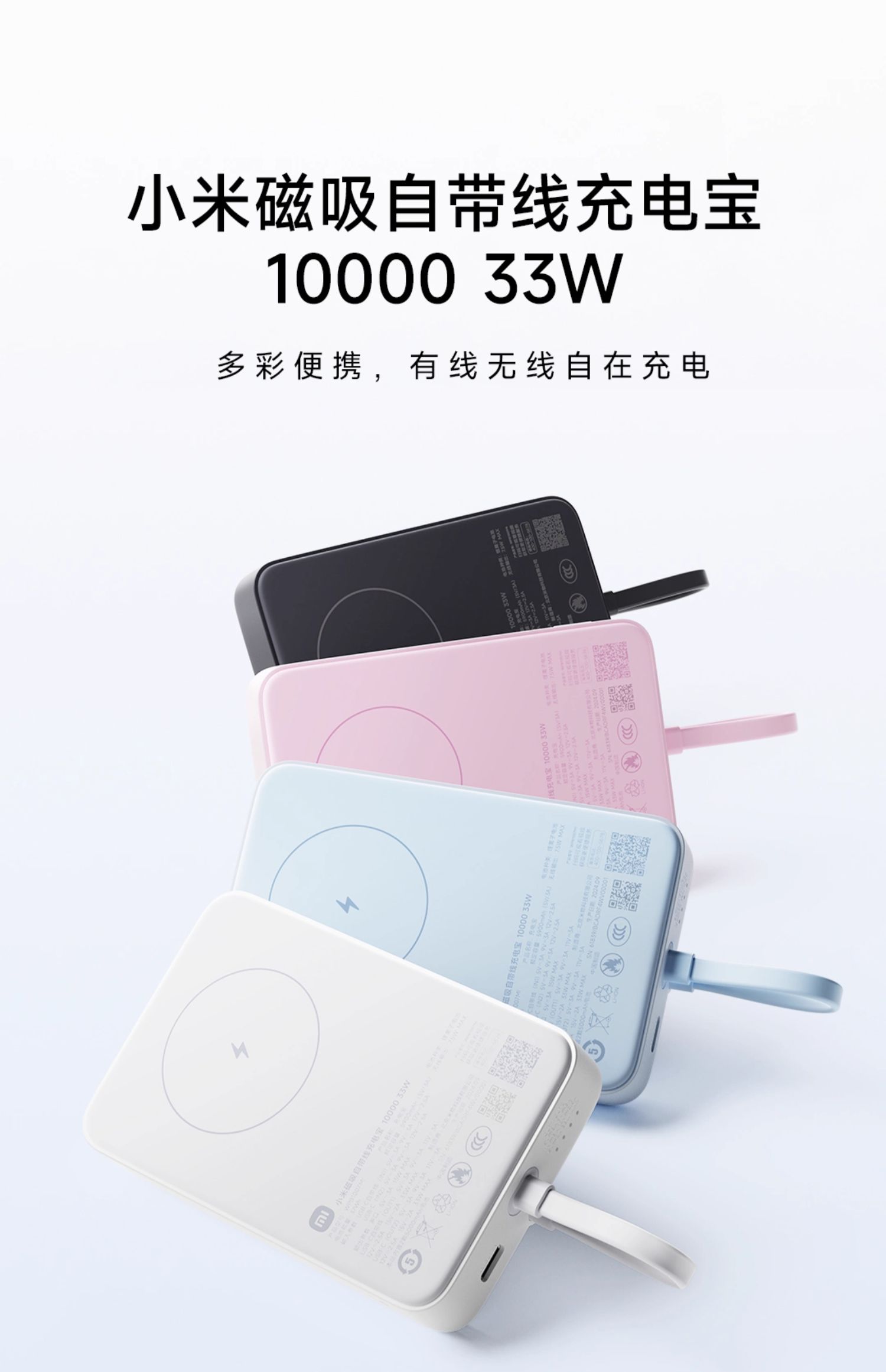 小米磁吸自带线充电宝10000 33W快充超薄迷你超大容量便携移动电源适用于华为小米苹果可上飞机