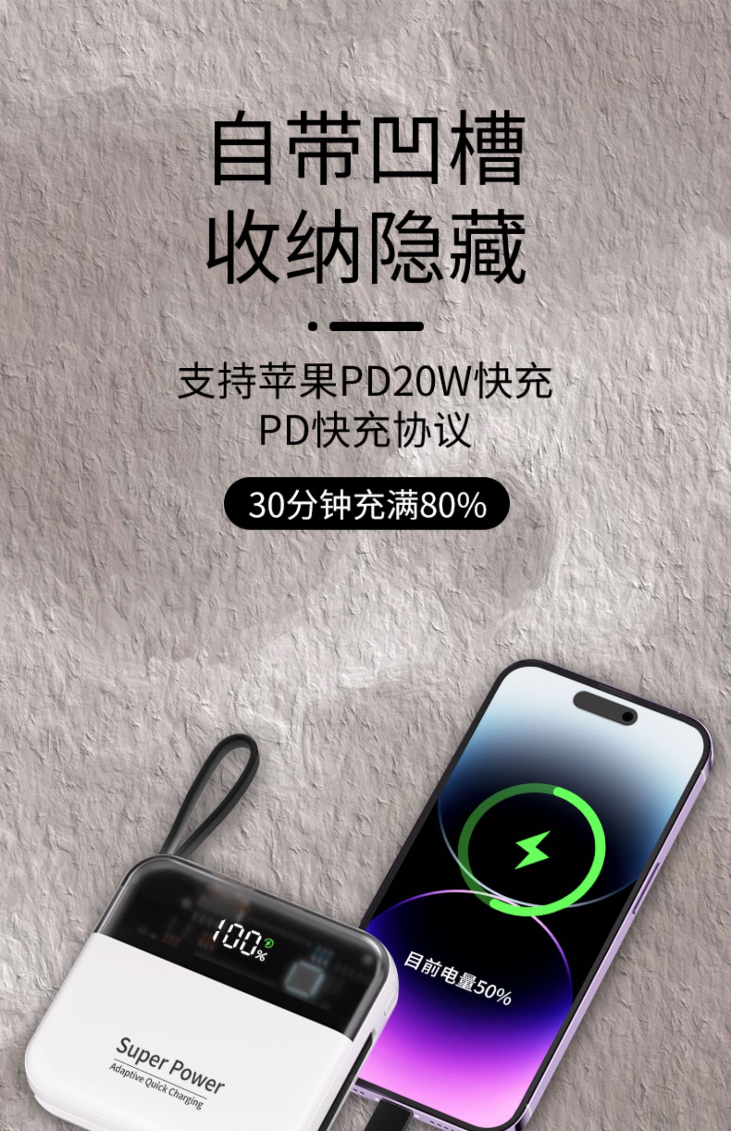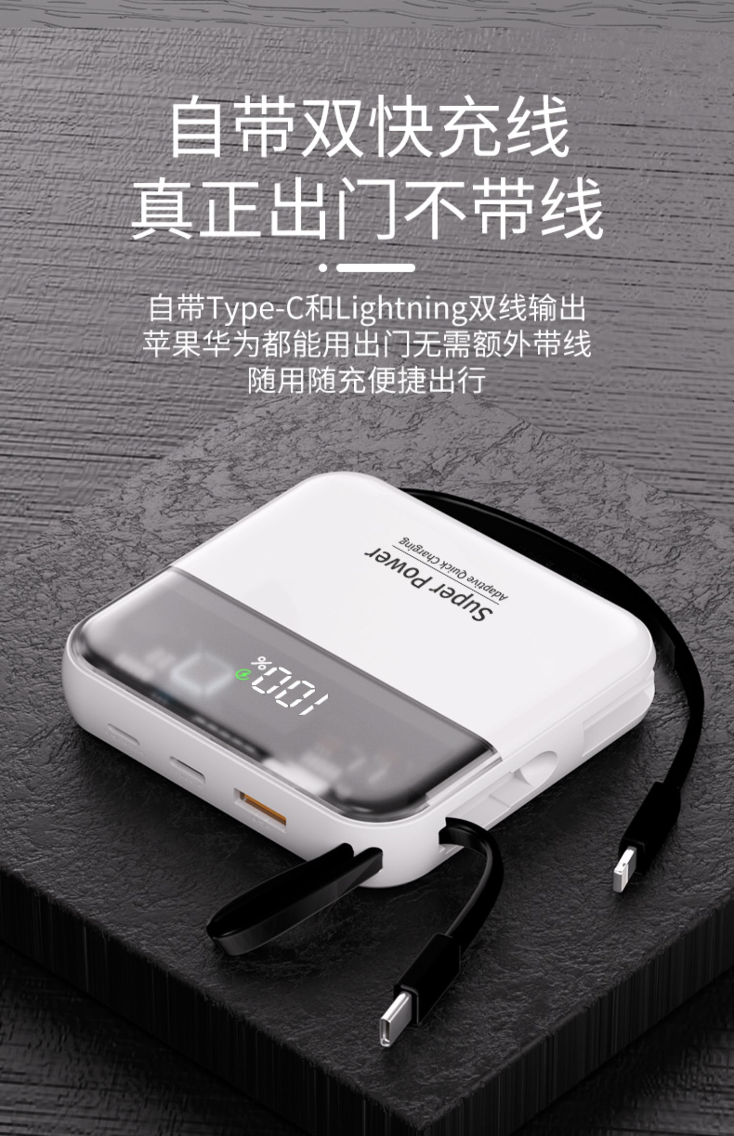 2025新款正品超级迷你大容量小巧超薄自带线快充20000充电宝飞机可携带定制logo便携毫安适用华为小米苹果16