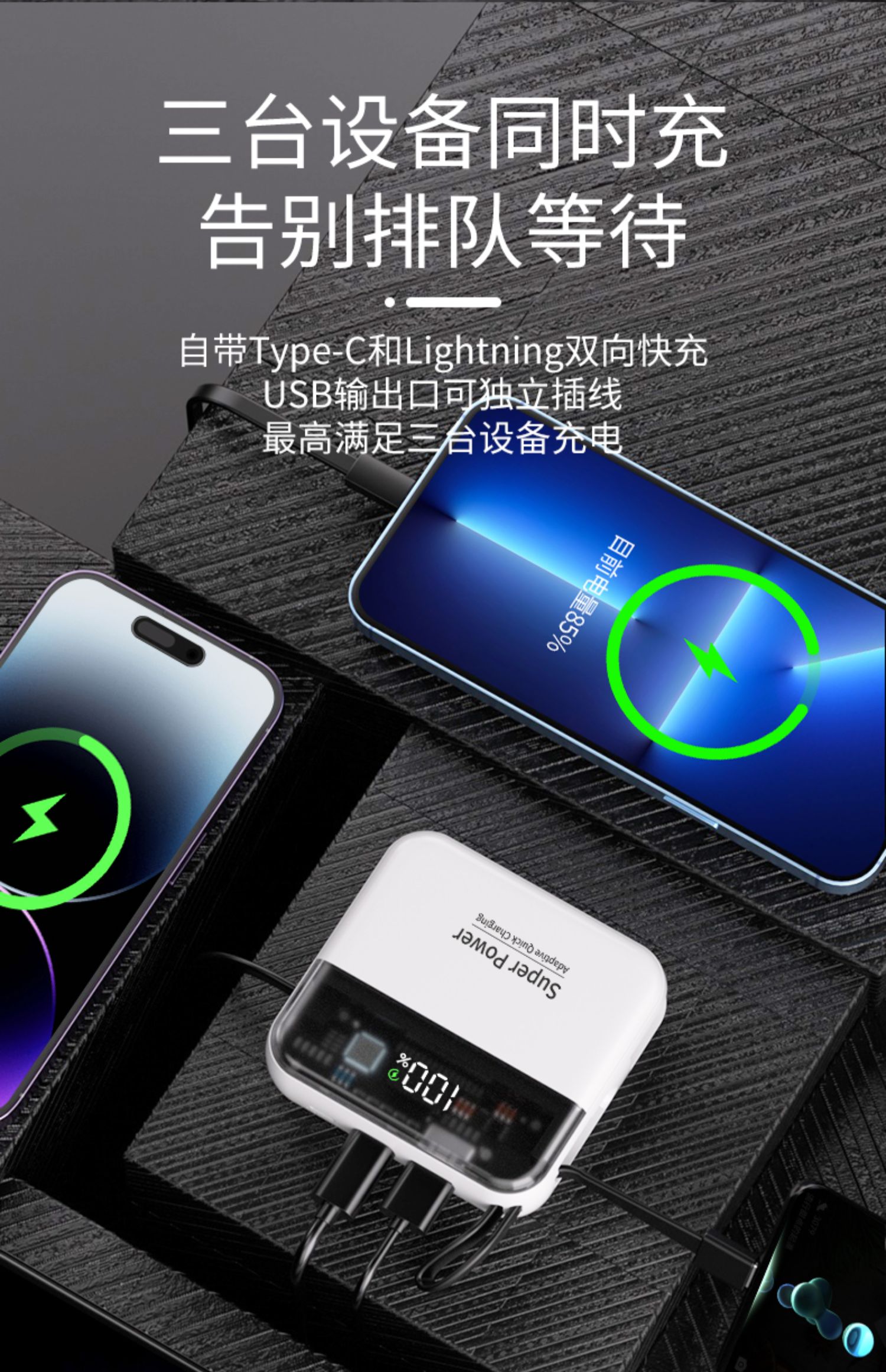 2万毫安★德国电芯★自带双快充线(颜色随机发货)