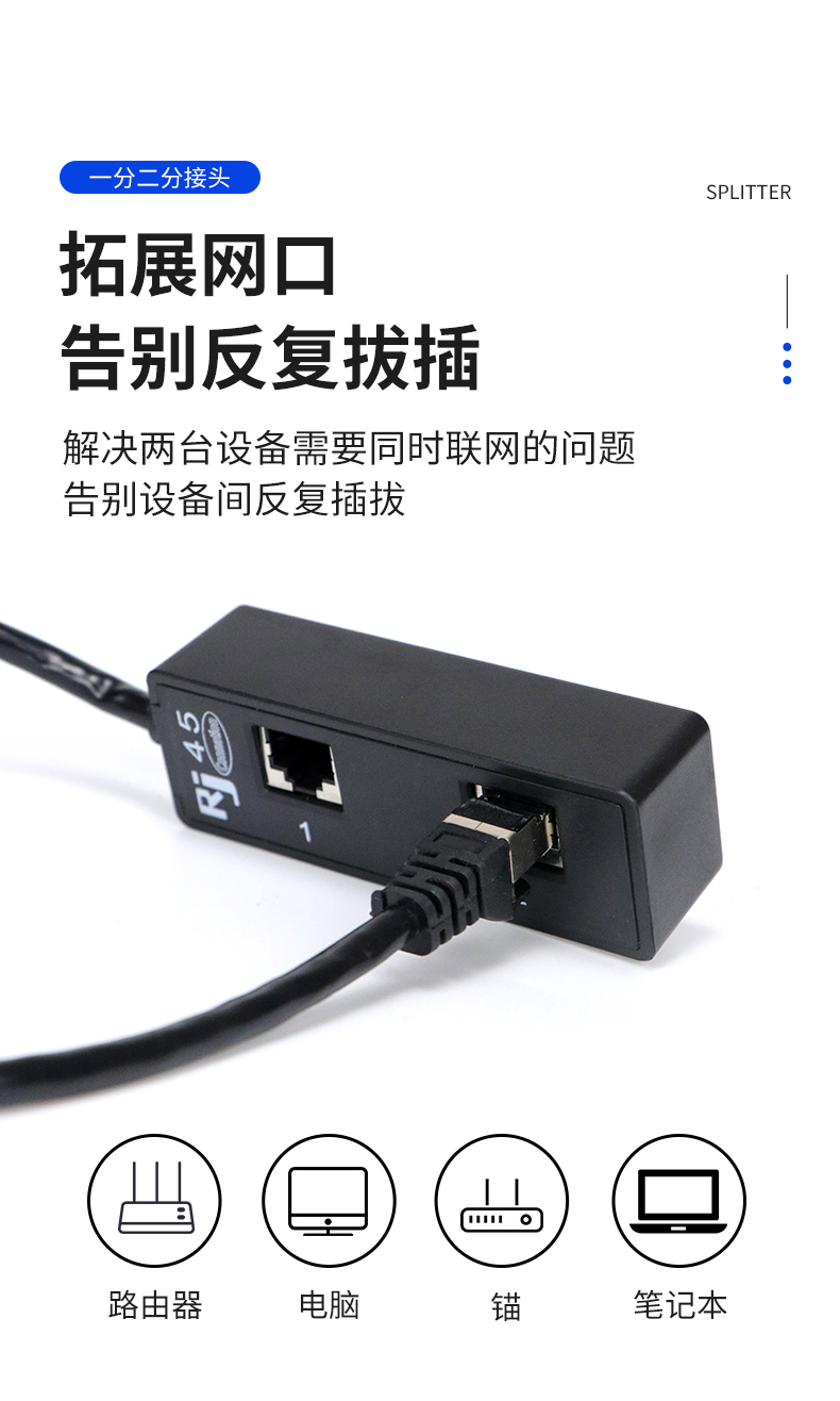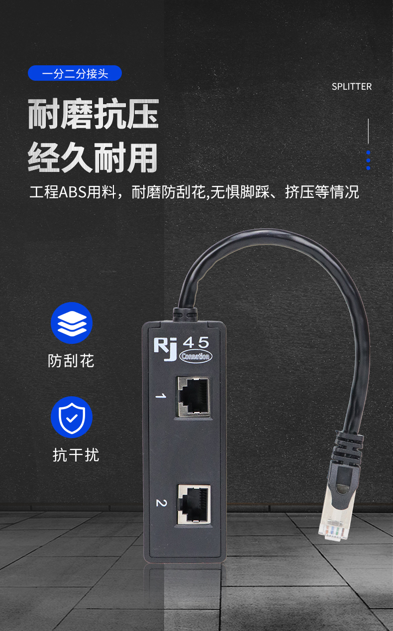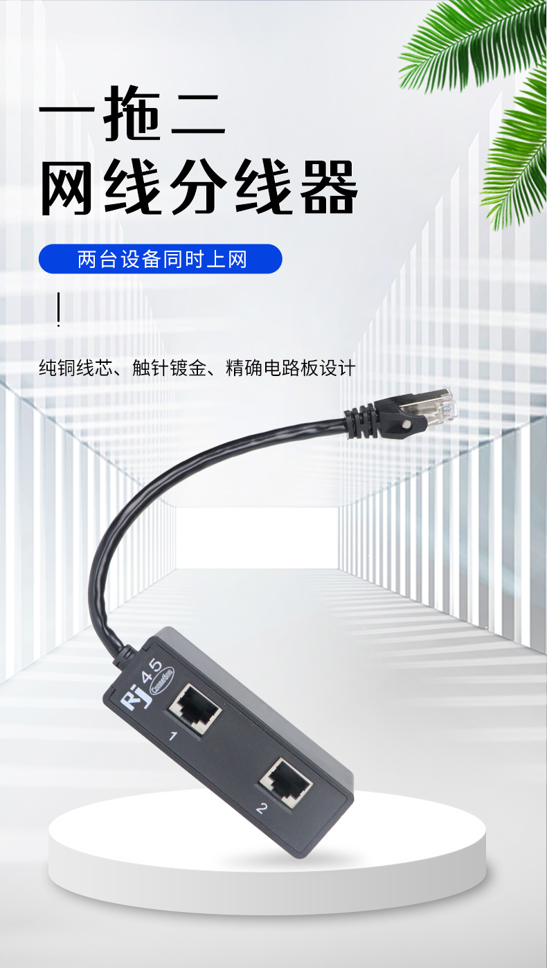 网线分线器同时上网IPTV电脑网络一分二转接头屏蔽高速网络分线器