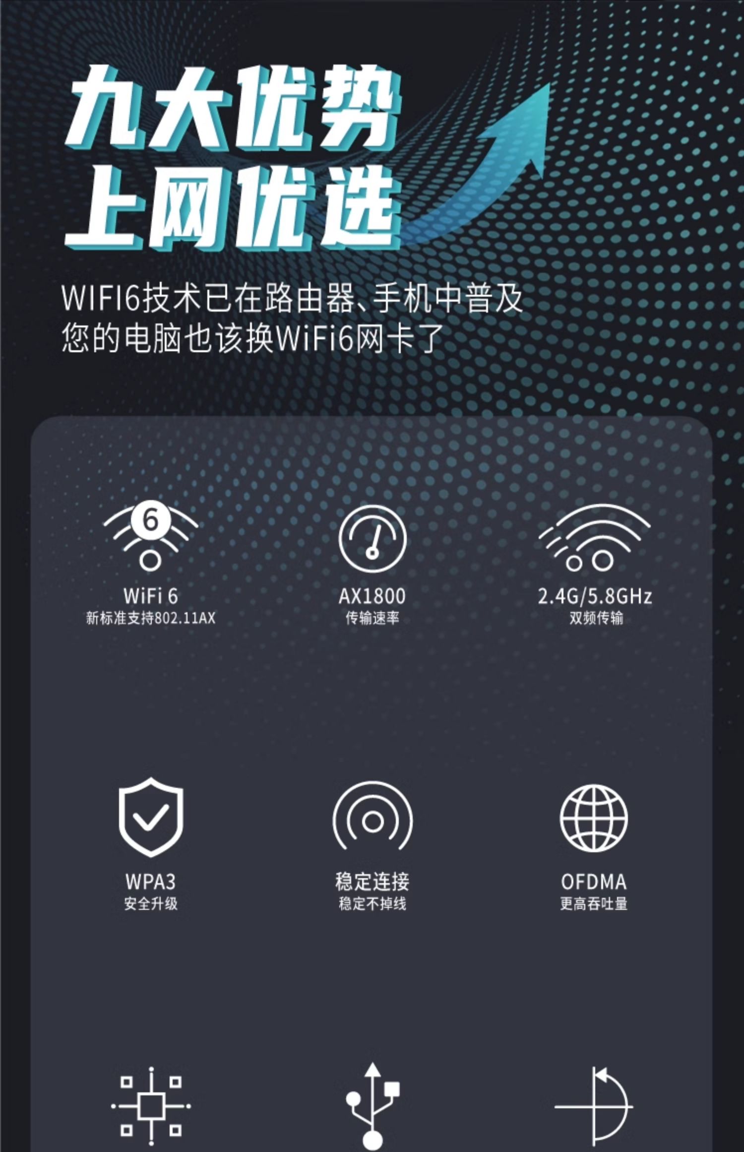 免驱动wifi6无线网卡5G双频千兆AX1800台式机笔记本电脑主机以太网电竞网络外置USB信号接收发射器链接热点