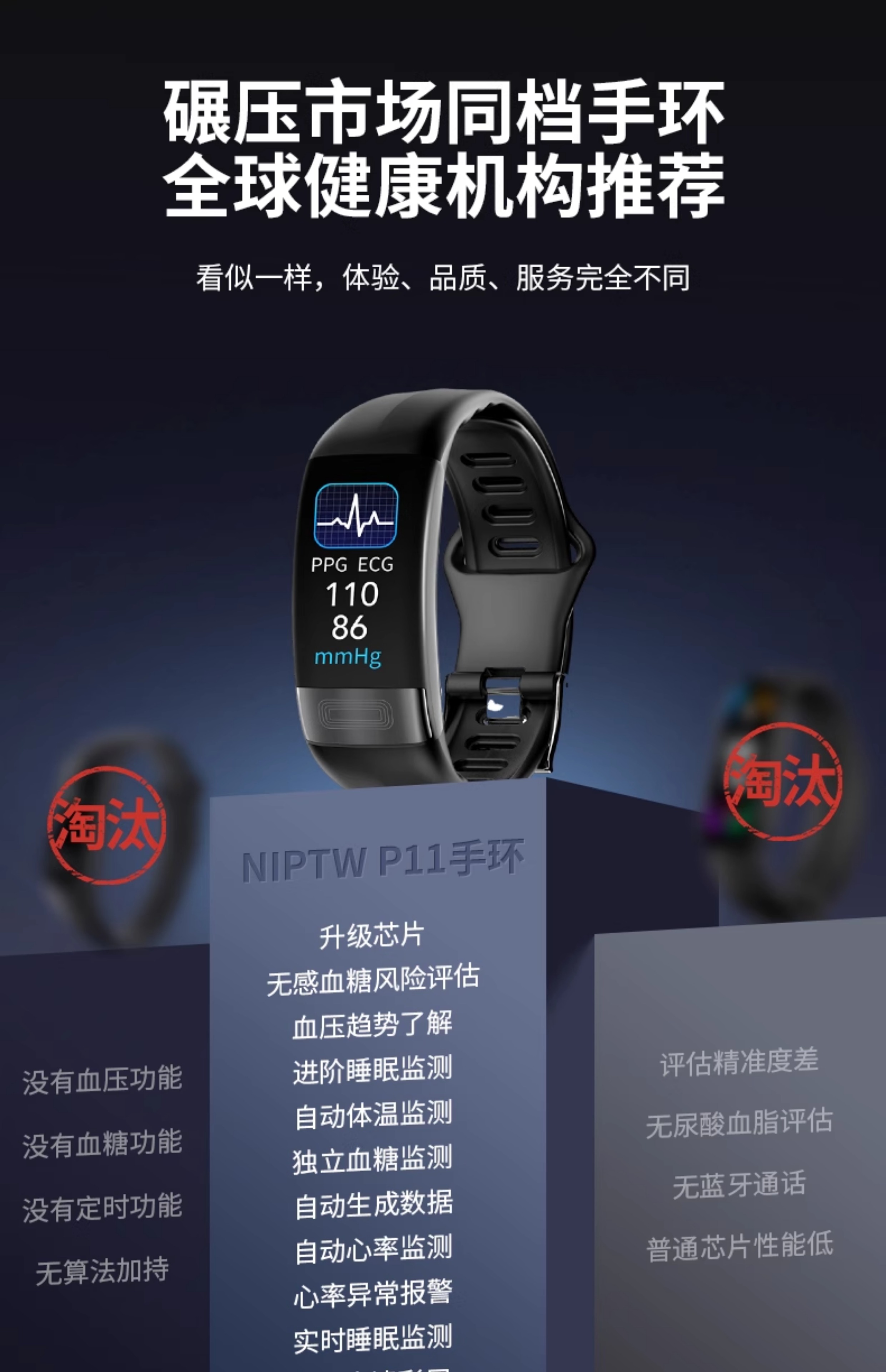 高精度无创测血糖血压风险评估心率智能手环血氧睡眠健康监测跑步心电图老年人运动手表