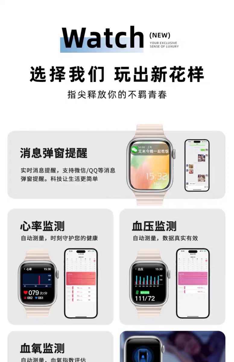 三偌【气泵式】血压监测智能手表血糖血脂尿酸心电图风险评估气囊式高精度心率血氧睡眠监测仪老人健康手环