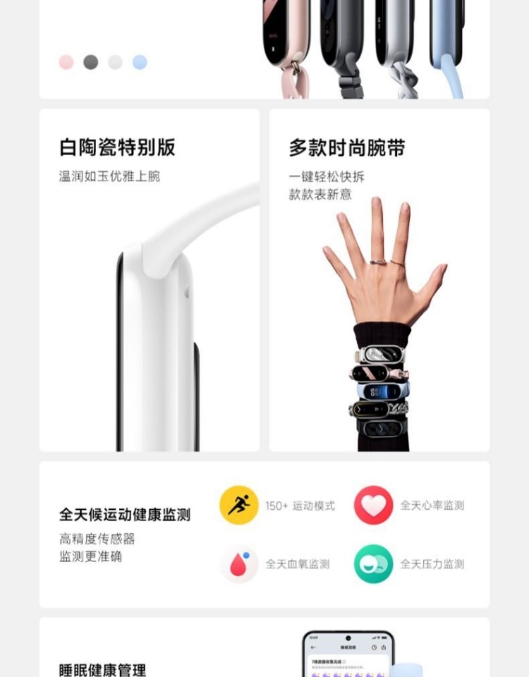 小米手环9陶瓷特别版智能运动健康防水手表血氧睡眠心率监测男女微信支付宝9NFC长续航全面屏手环10官方旗舰