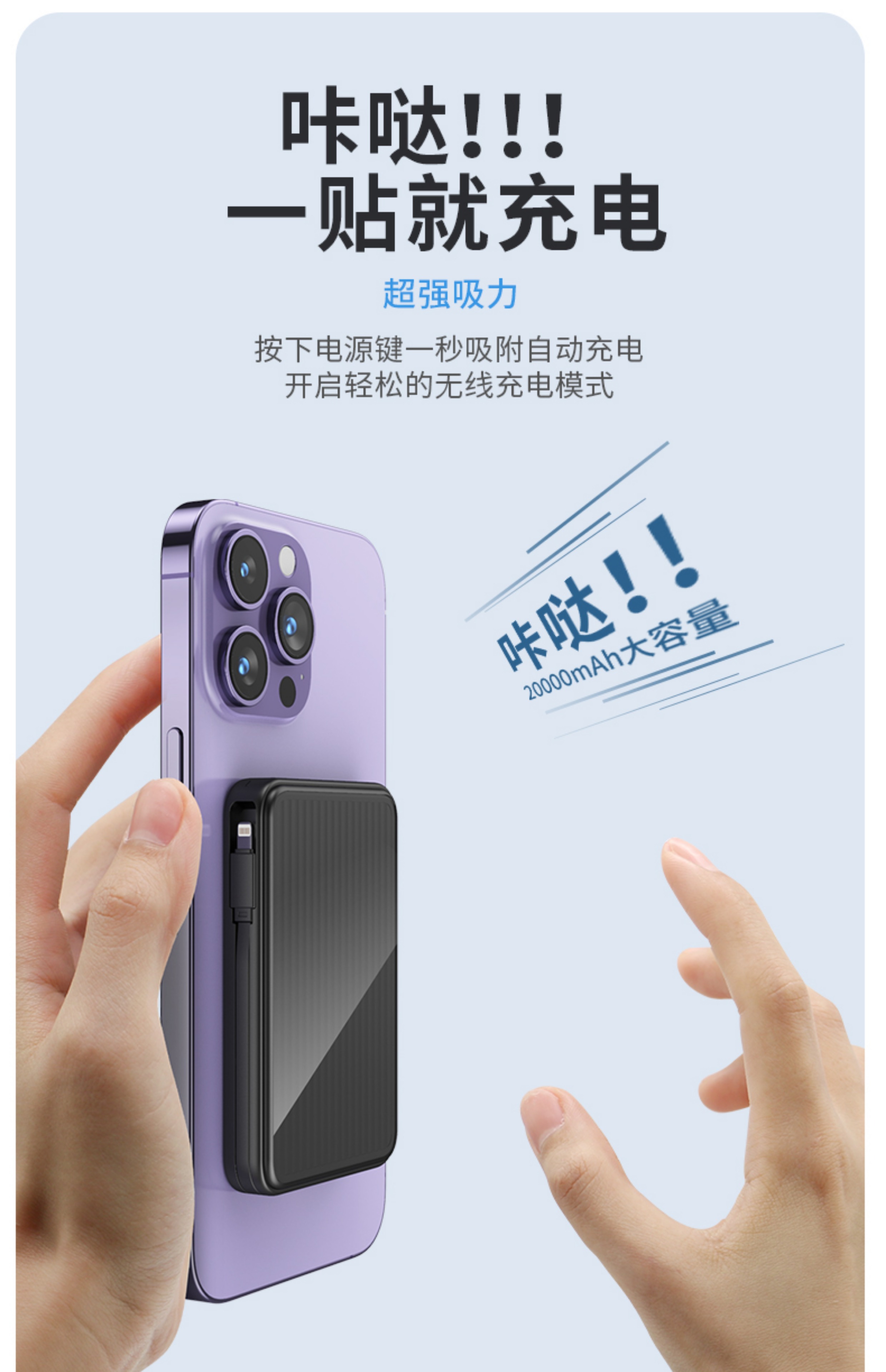 【30000M|0.65cm全网最薄】彩能正品快充magsaf磁吸无线充电宝超薄轻薄小巧便携移动电源适用于苹果
