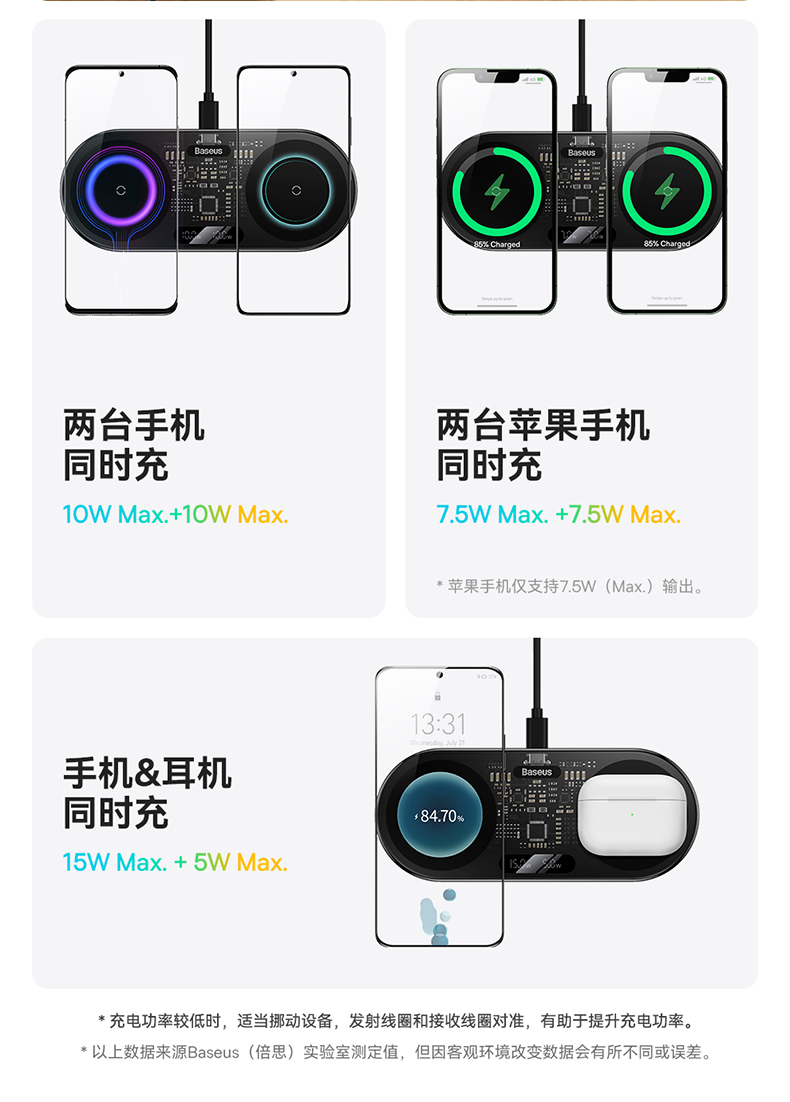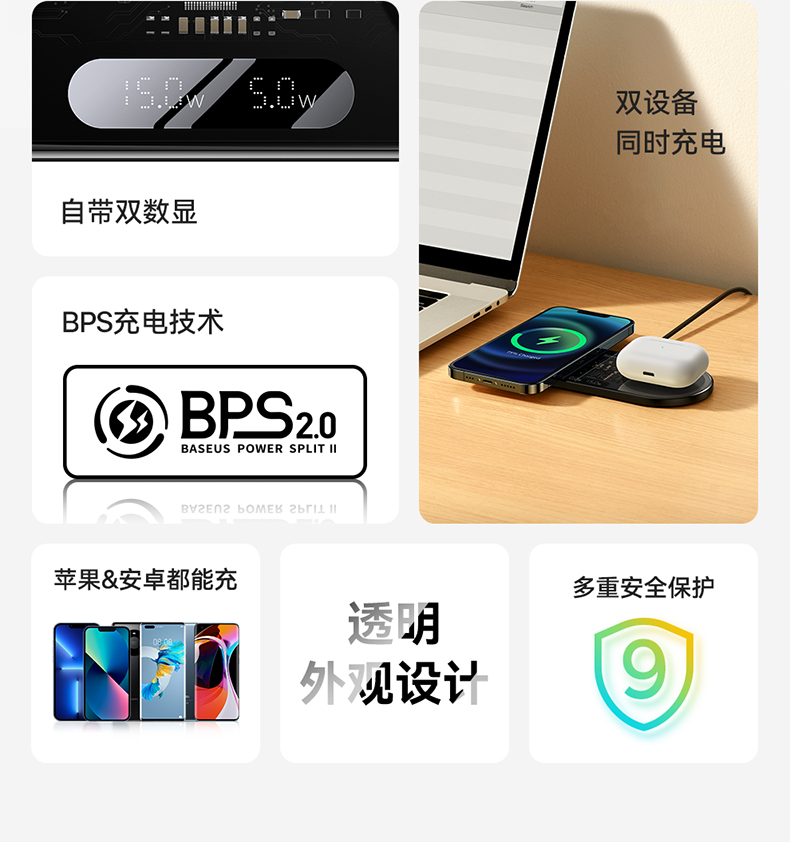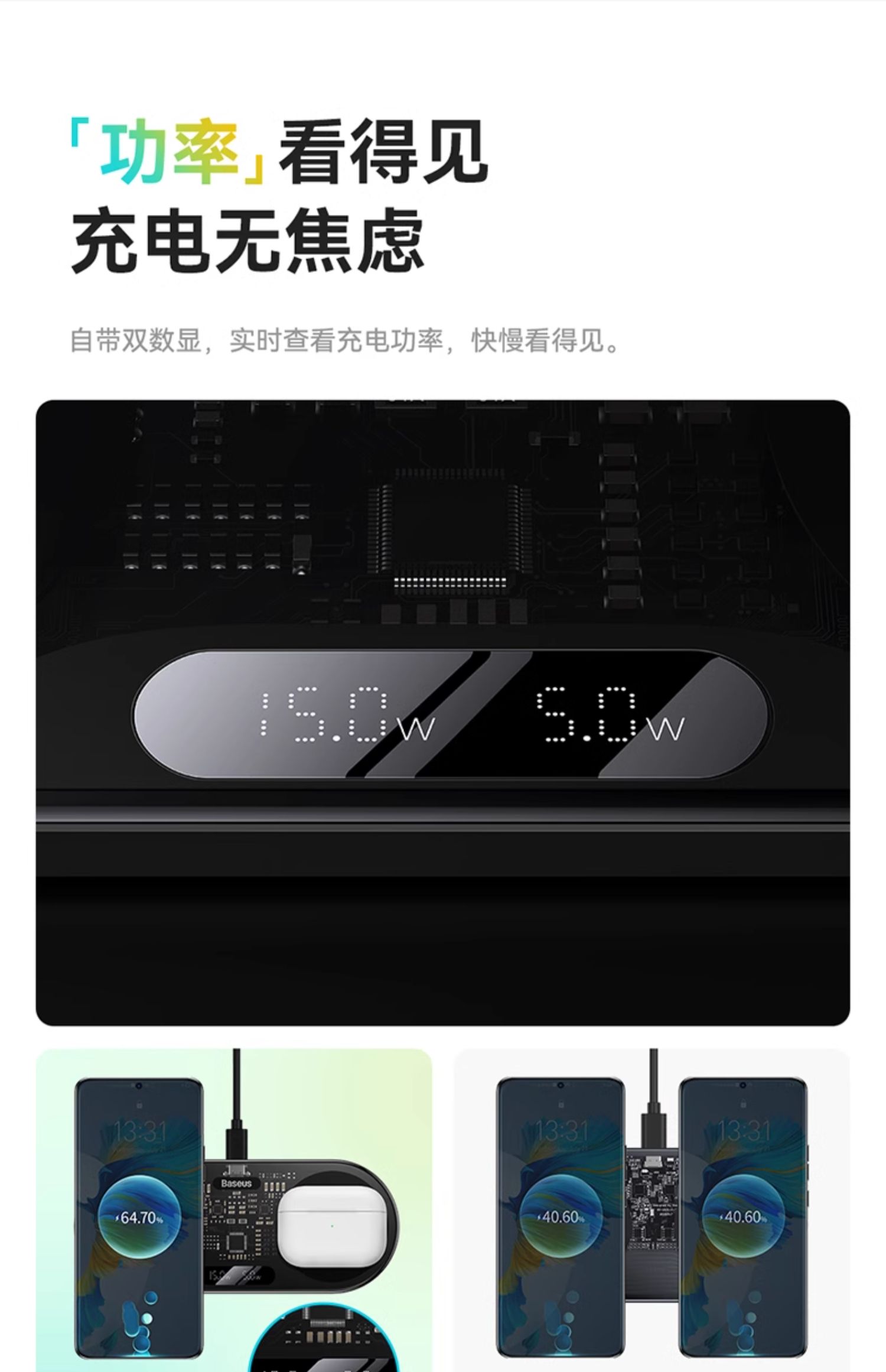 倍思无线充电器二合一适用苹果16Promax专用iphone15无限20W快充板14手机感应底座万能桌面华为三星车载通用