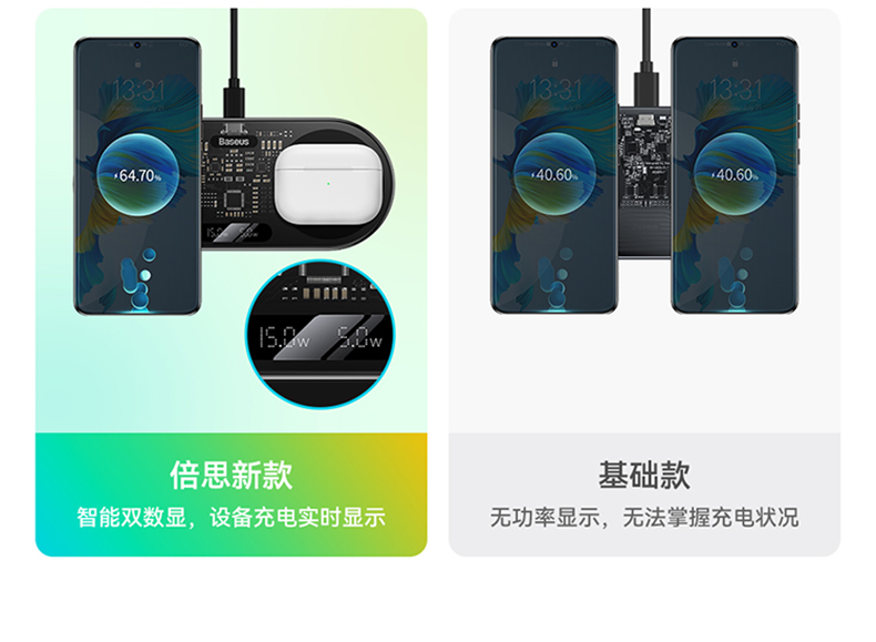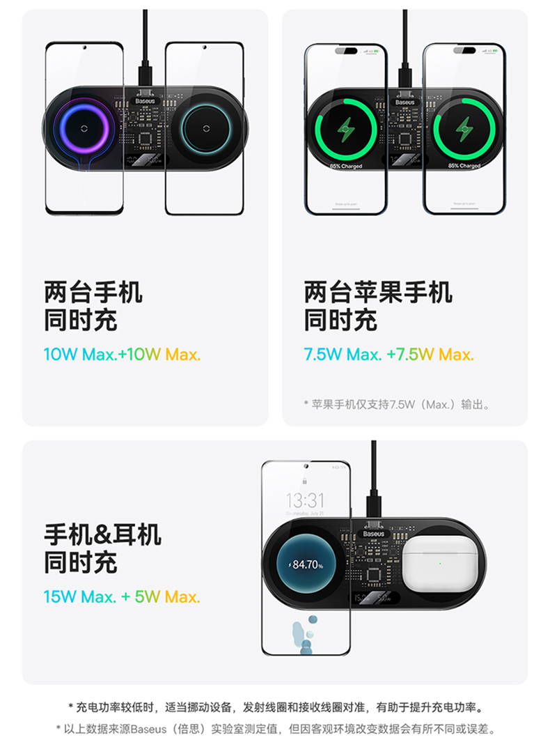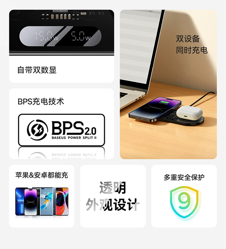 倍思二合一无线充电器适用苹果14手机快充专用iphone15Promax桌面充电底座车载20w华为三星小米安卓万能x通用