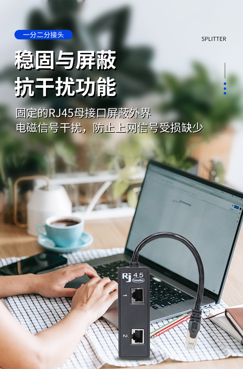 网线分线器同时上网IPTV电脑网络一分二转接头屏蔽高速网络分线器