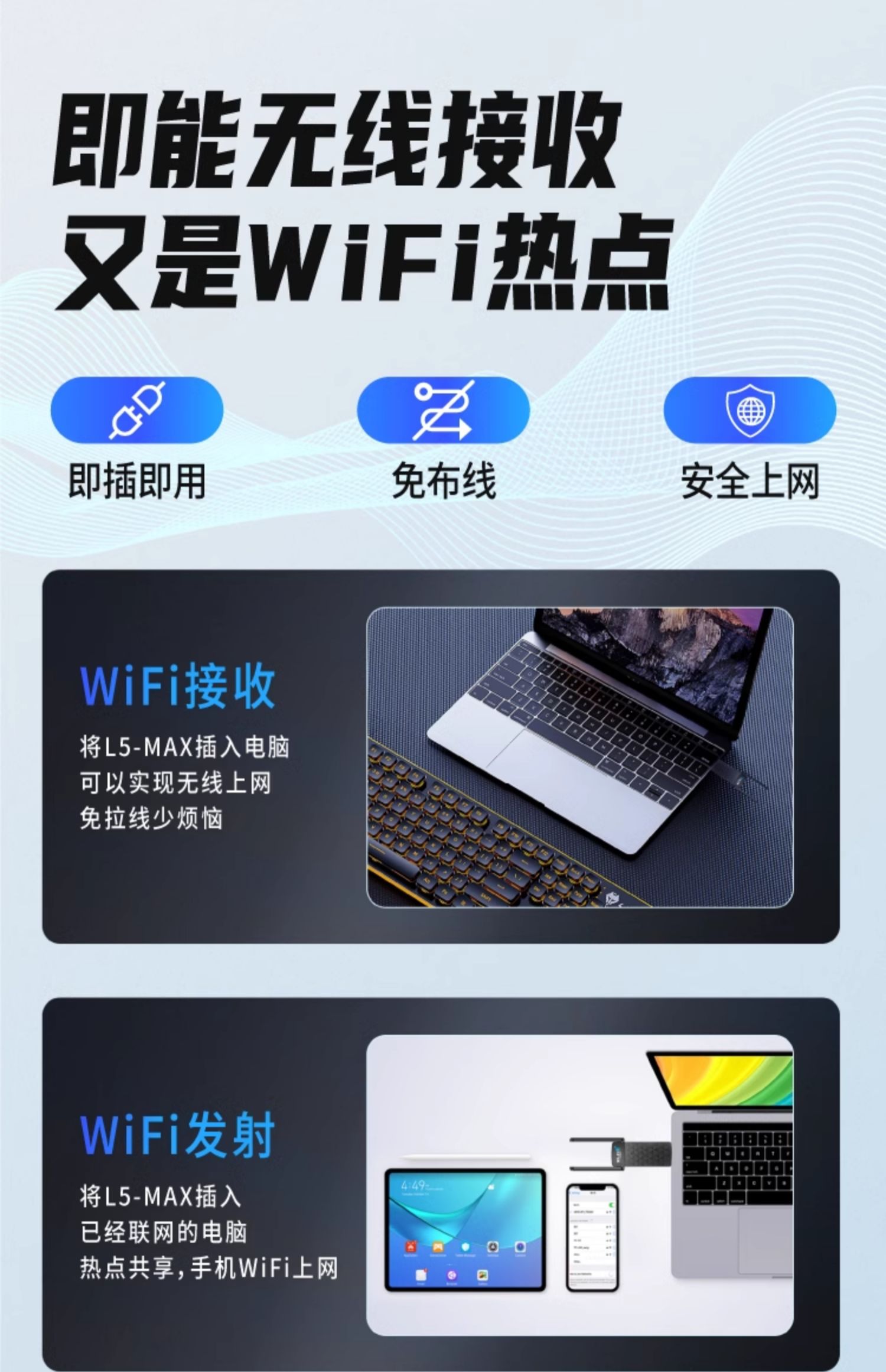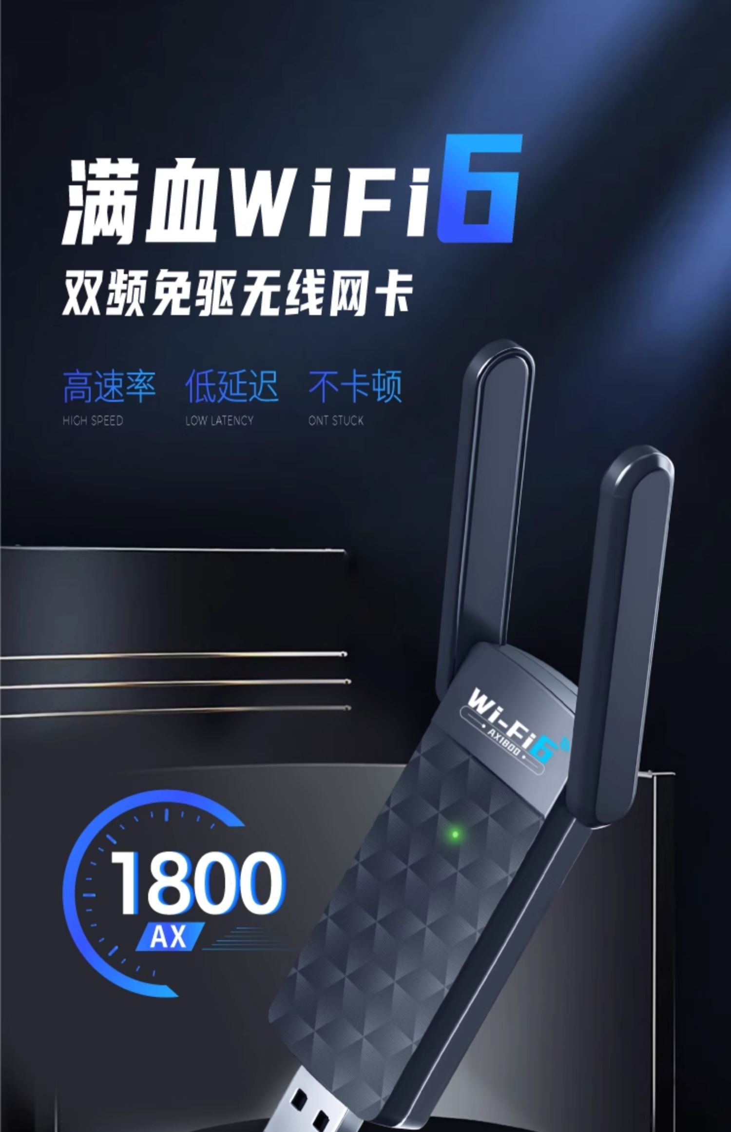 免驱动wifi6无线网卡5G双频千兆AX1800台式机笔记本电脑主机以太网电竞网络外置USB信号接收发射器链接热点