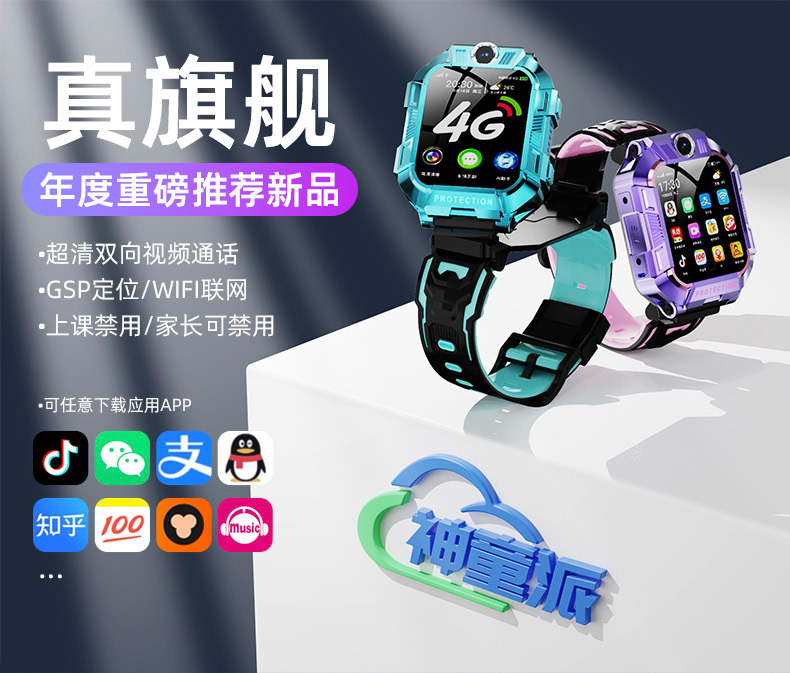 天才儿童电话手表智能手表5G全网通小学初中生专用学习定位防水可wifi视频通话男童女孩