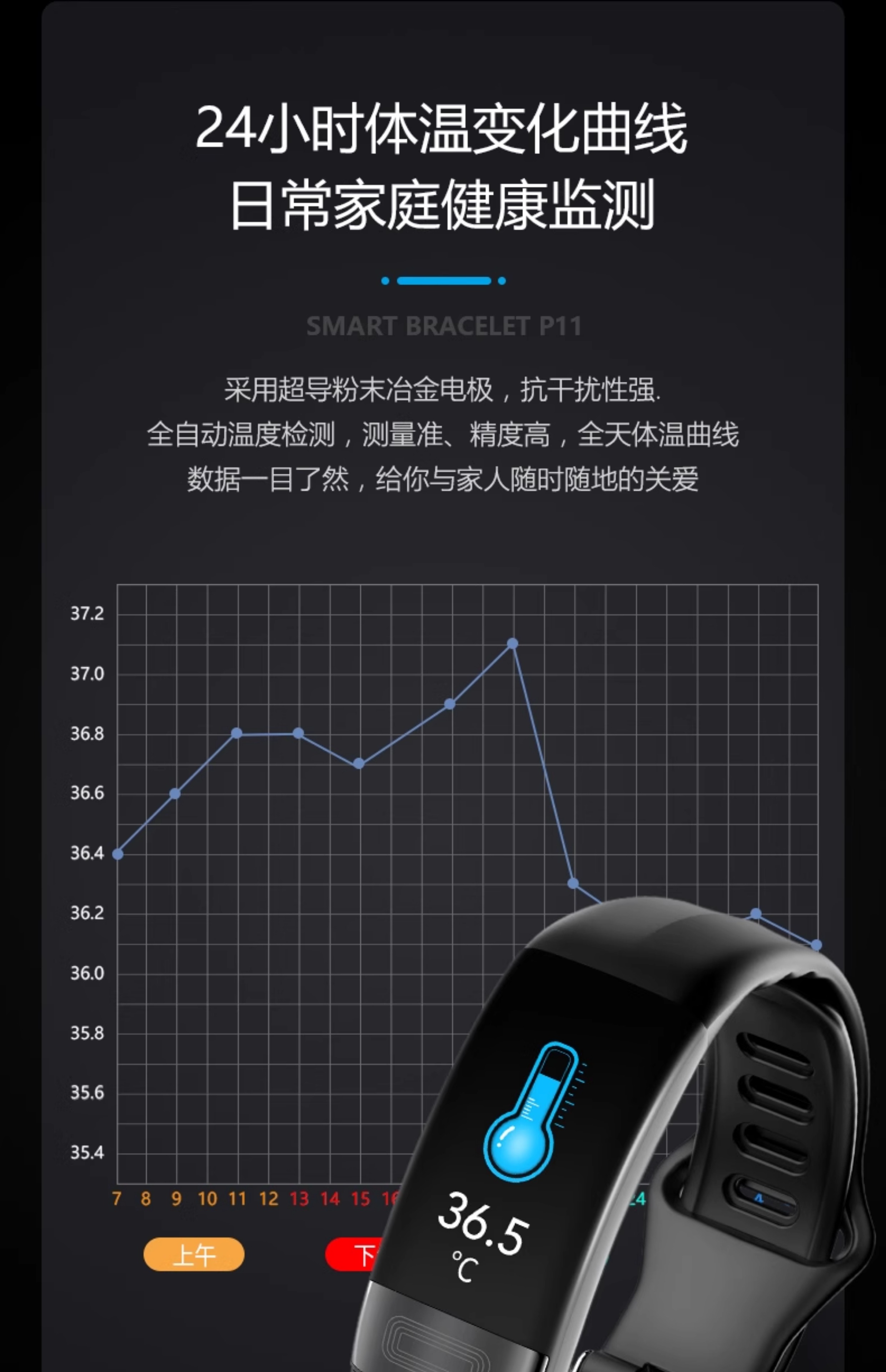 血糖流变技术+实时血压评估+体温监测+血氧实时监测+自动心率监测+高清大屏(颜色随机发货)