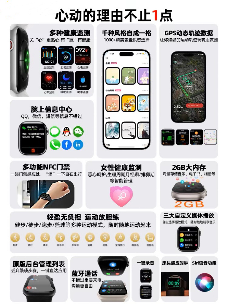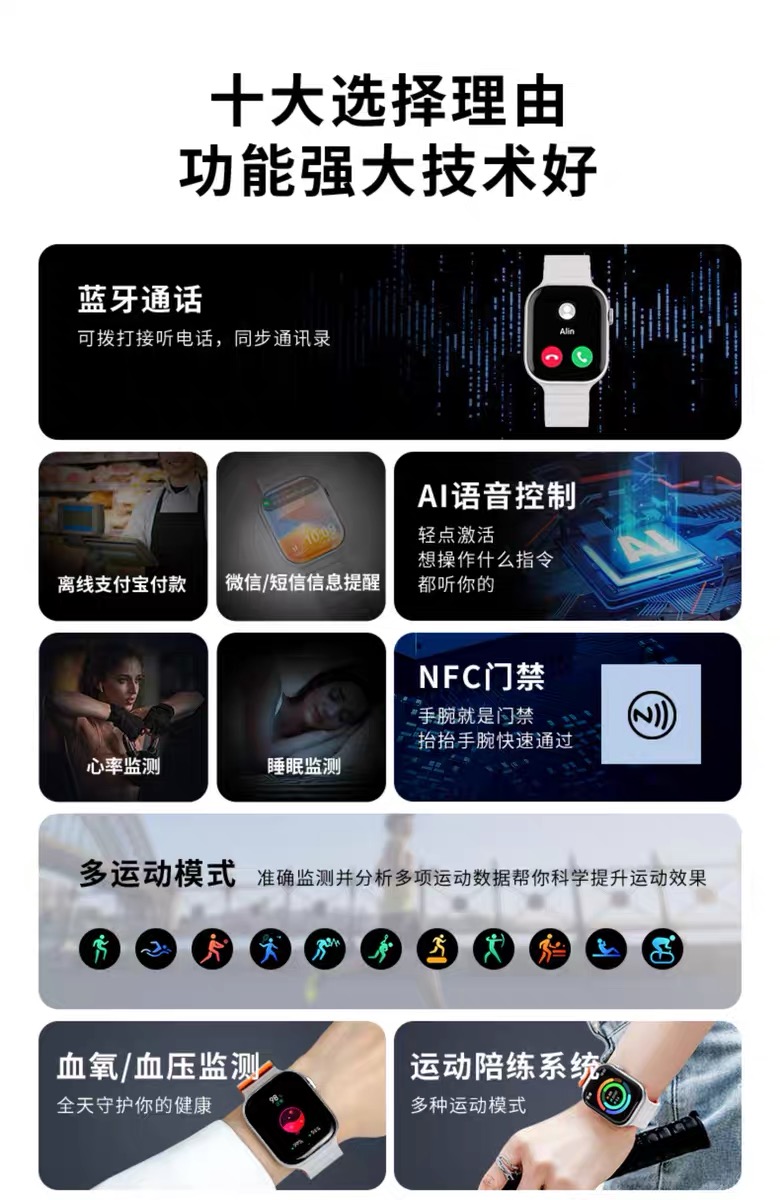 美国进口通用级激光理疗精准无创测血糖尿酸智能手环手表蓝牙通话监测血压心率血氧心电图远程报警睡眠运动步